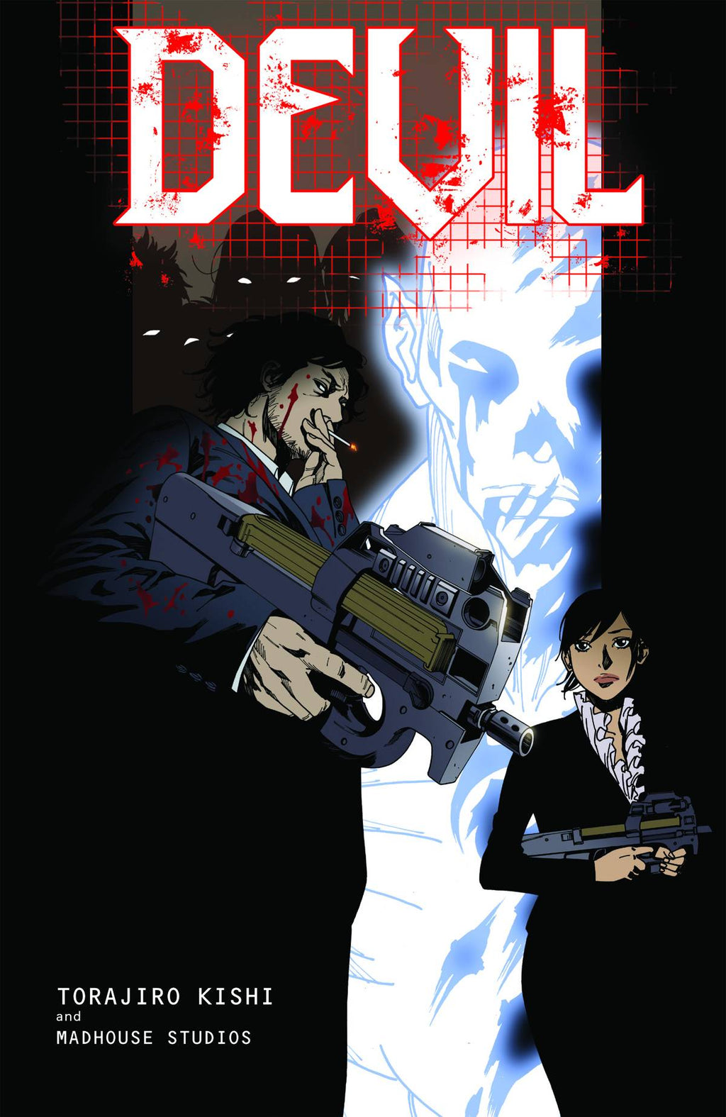 Manga artist Torajiro Kishi (Maka-Maka) and blockbuster anime studio Madhouse (Trigun, Paprika, Ninja Scroll) love comics. So much so that they've decided to publish an original, Western-style comic exclusively with Dark Horse! Enter Devil, a thrilling sci-fi take on the vampire genre.  A vampire virus threatens humanity, and it may come down to a rogue cop and his strait-laced partner to contain the freakishly superhuman devils from rampaging across Japan. Why did the government create this virus, and what will result from its perfection? And more importantly, have the humans created a being that will now take the throne at the top of the food chain? Collects the four-issue miniseries.