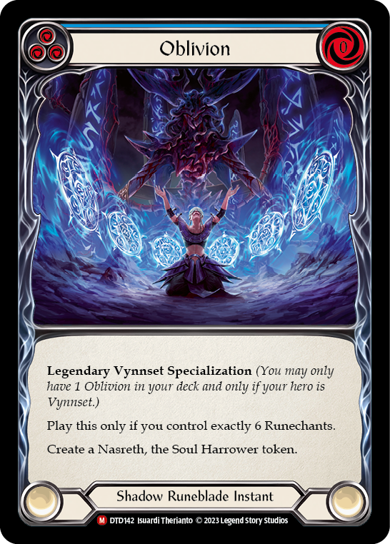 Legendary Vynnset Specialization (You may only have 1 Oblivion in your deck and only if your hero is Vynnset.) Play this only if you control exactly 6 Runechants. Create a Nasreth, the Soul Harrower token.