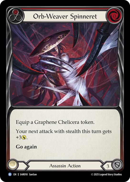 Equip a Graphene Chelicera token. Your next attack with stealth this turn gets +3POWER. Go again