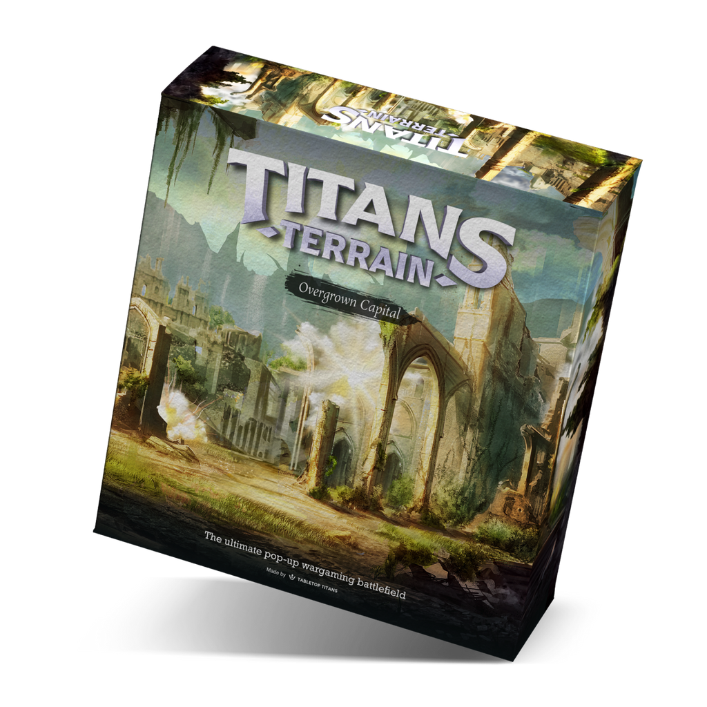 Get a copy of Titans Terrain - Overgrown Capital! A complete set of terrain for games of Warhammer 40k, Age of Sigmar and more. 12 tiles all that pop-up to create instantly create a beautiful and dynamic battlefield. Create hundreds of unique layouts all that create balanced and compelling games.